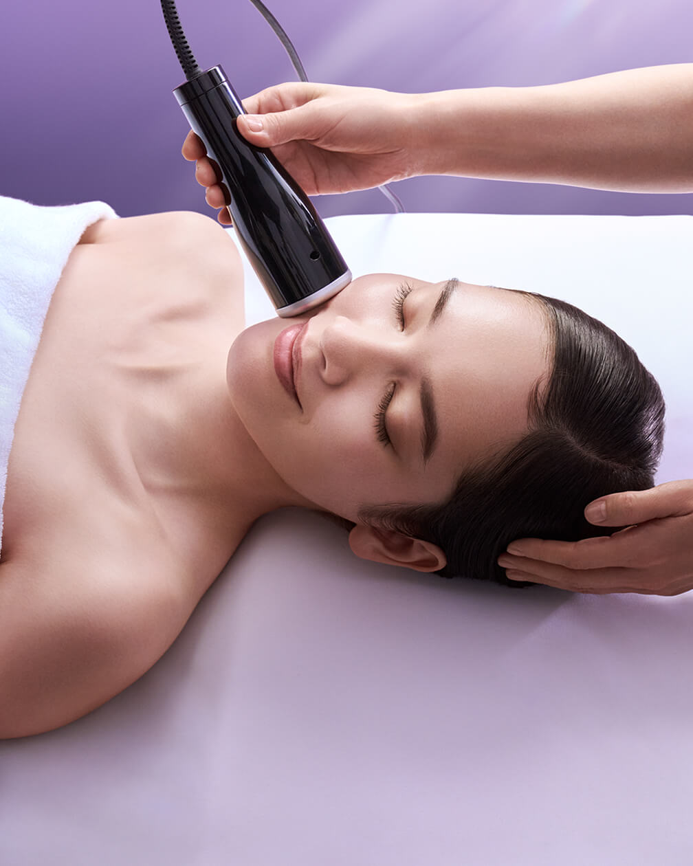 運用冷熱棒按摩結合微電流,深層刺激淋巴毛細血管,促進血液循環,強化淋巴回收力,重啟膠原再生,雕塑立體年輕輪廓與緊緻頸胸線條。